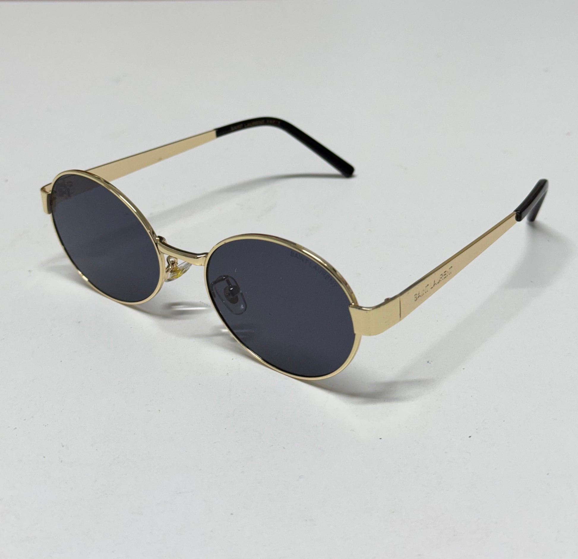 A Classic Vintage Oval Metal Sun Style, With a Thick Metal Construction, Inspired by Antony Vaccarello's Creative Input for Spring 25 Collection, a Fashion Rim Metal Completing the Current Offer and Riding the Metal Trend with SL Logo Laser Engraved on Both Metal Temple".