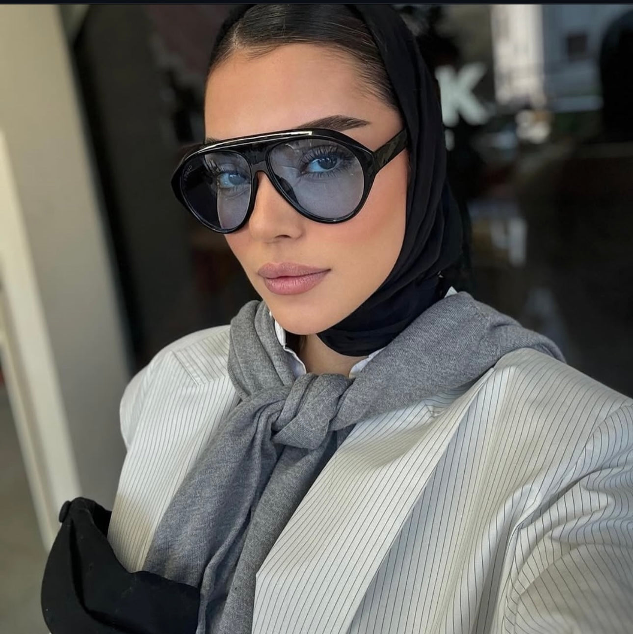 Oversized aviator shape sunglasses bold and unique trendy colored lens in black & leopard frame