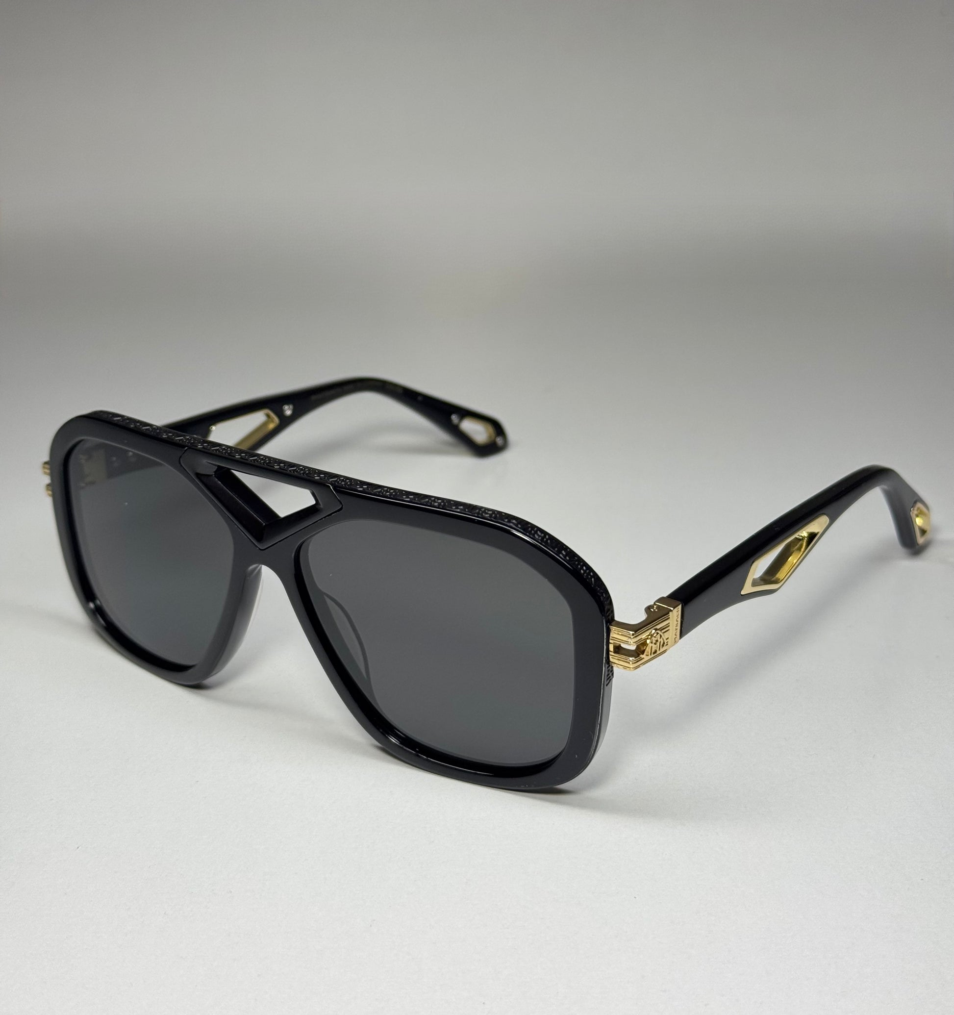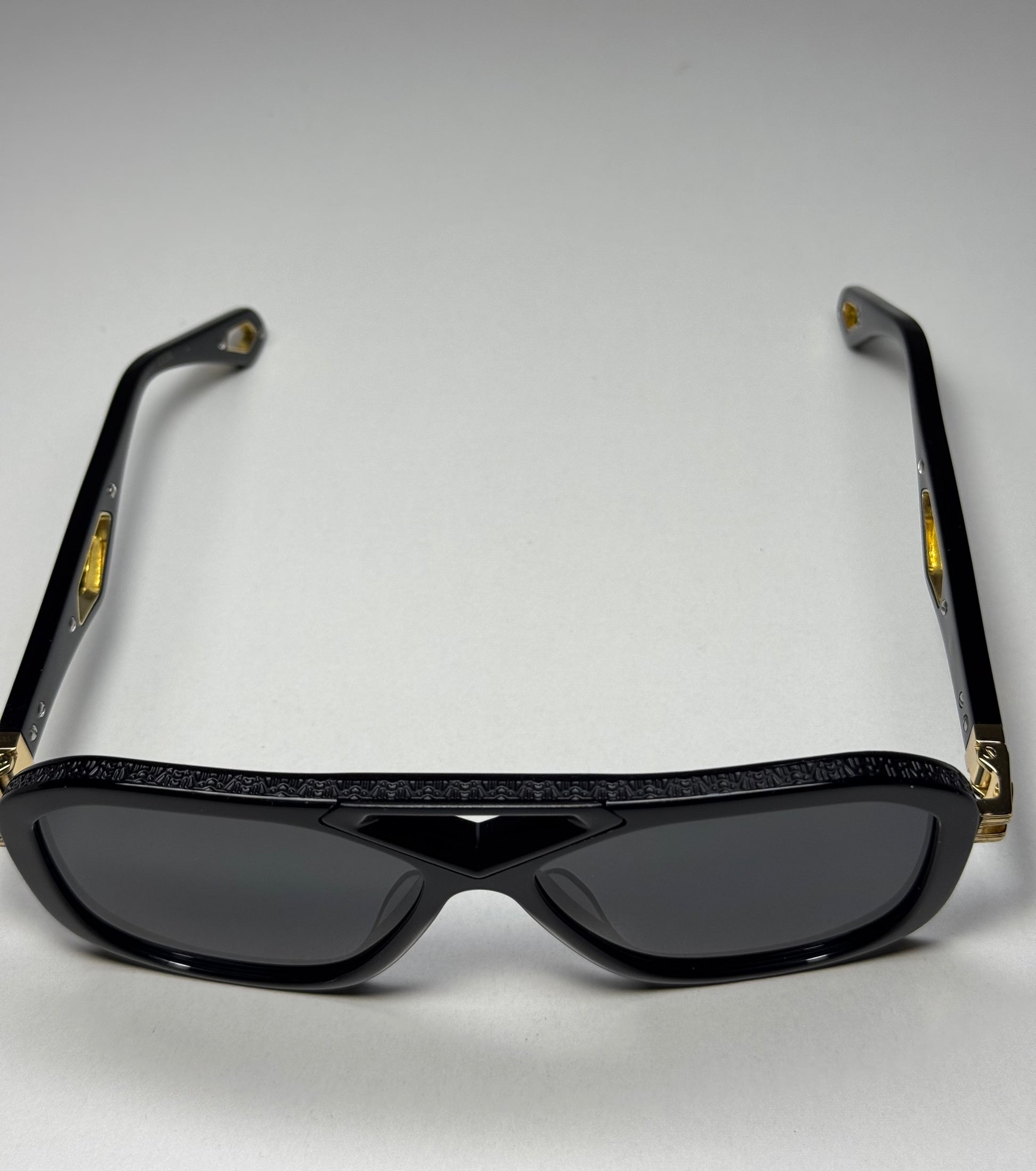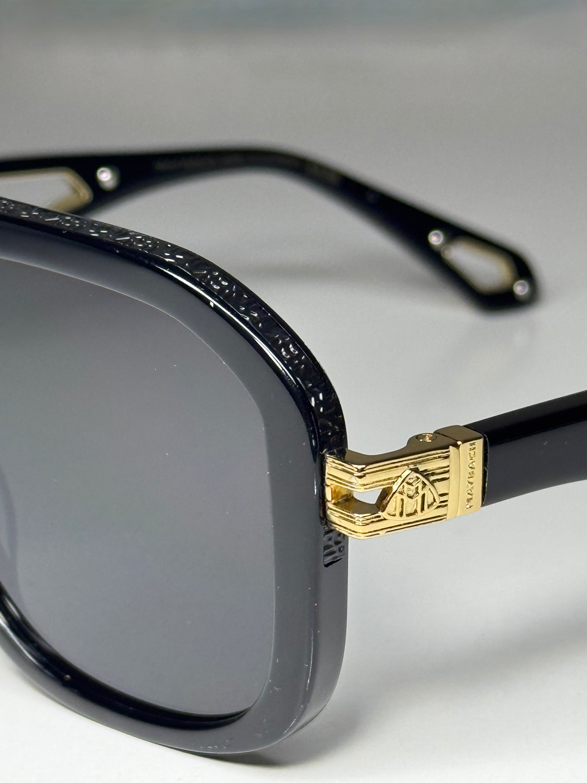 Make an impression with THE JACK! Oversize sunglasses with dramatic angular rim. Created from the finest natural buffalo horn and precious plated titanium, the sunglasses incorporate 3D MAYBACH logos, while MAYBACH enthusiasts will also love the elegant “flowing lines” brand detailing that adorns the double-bar end pieces. The bridge and temples display open elements inspired by the styling of the world famous automobile interior. A spring hinge for added comfort and premium sunlenses from ZEISS add