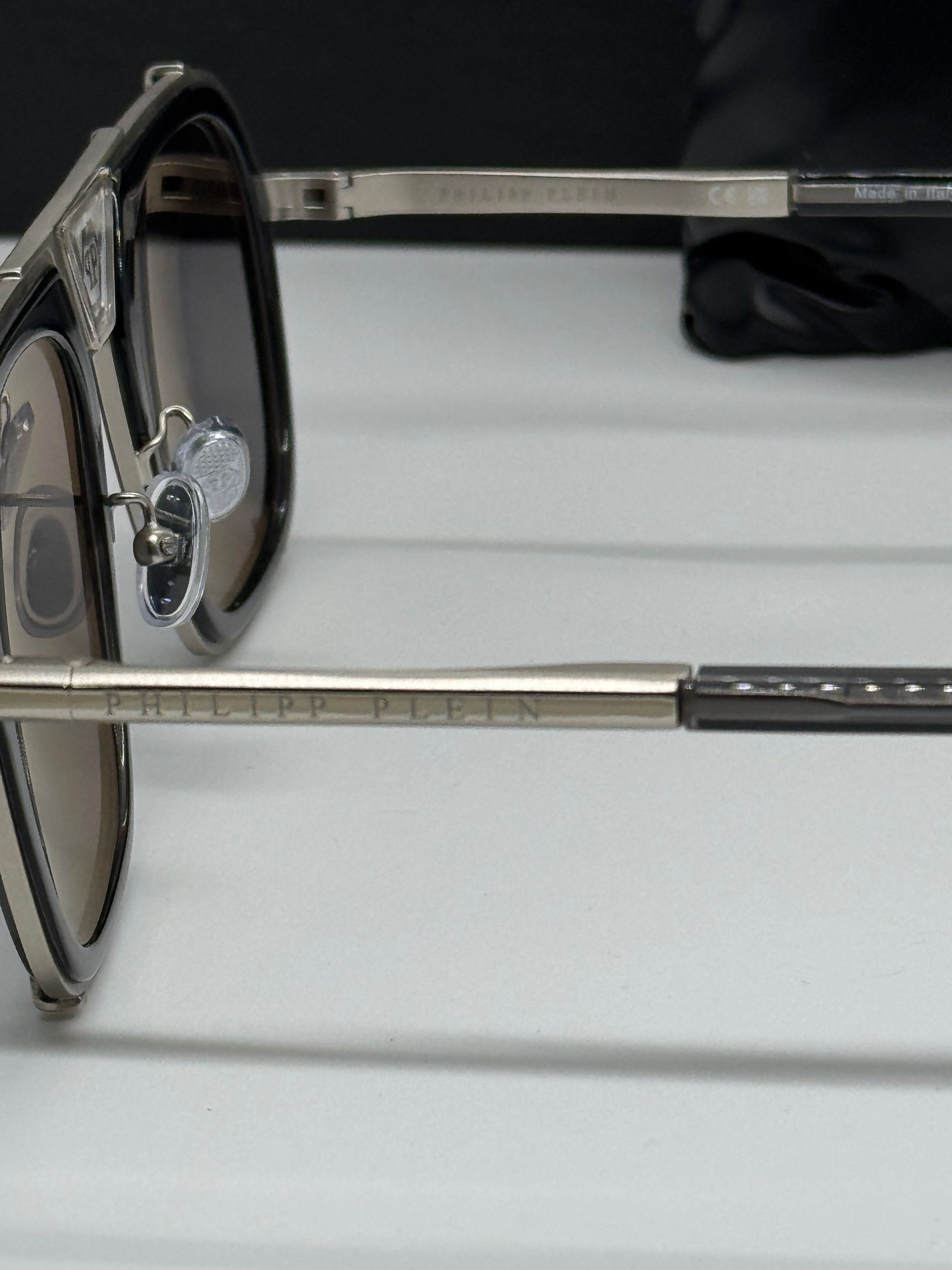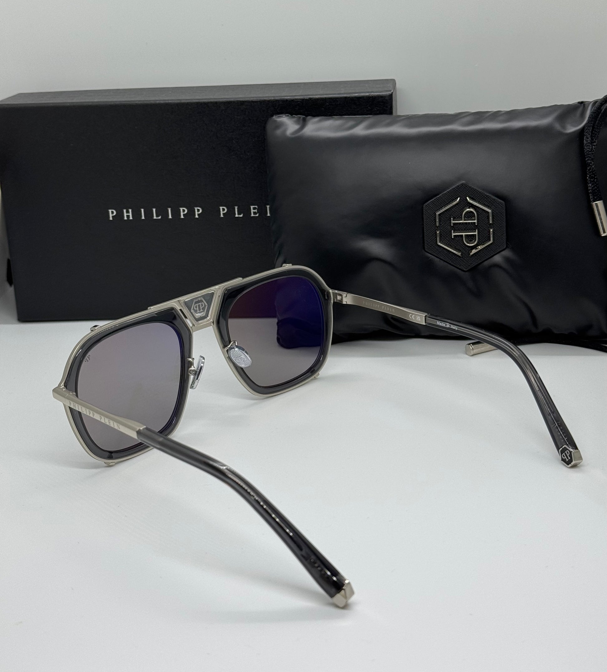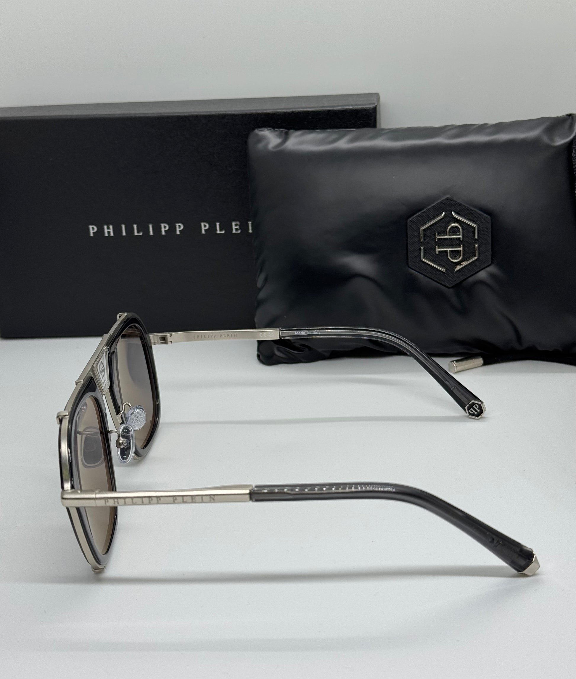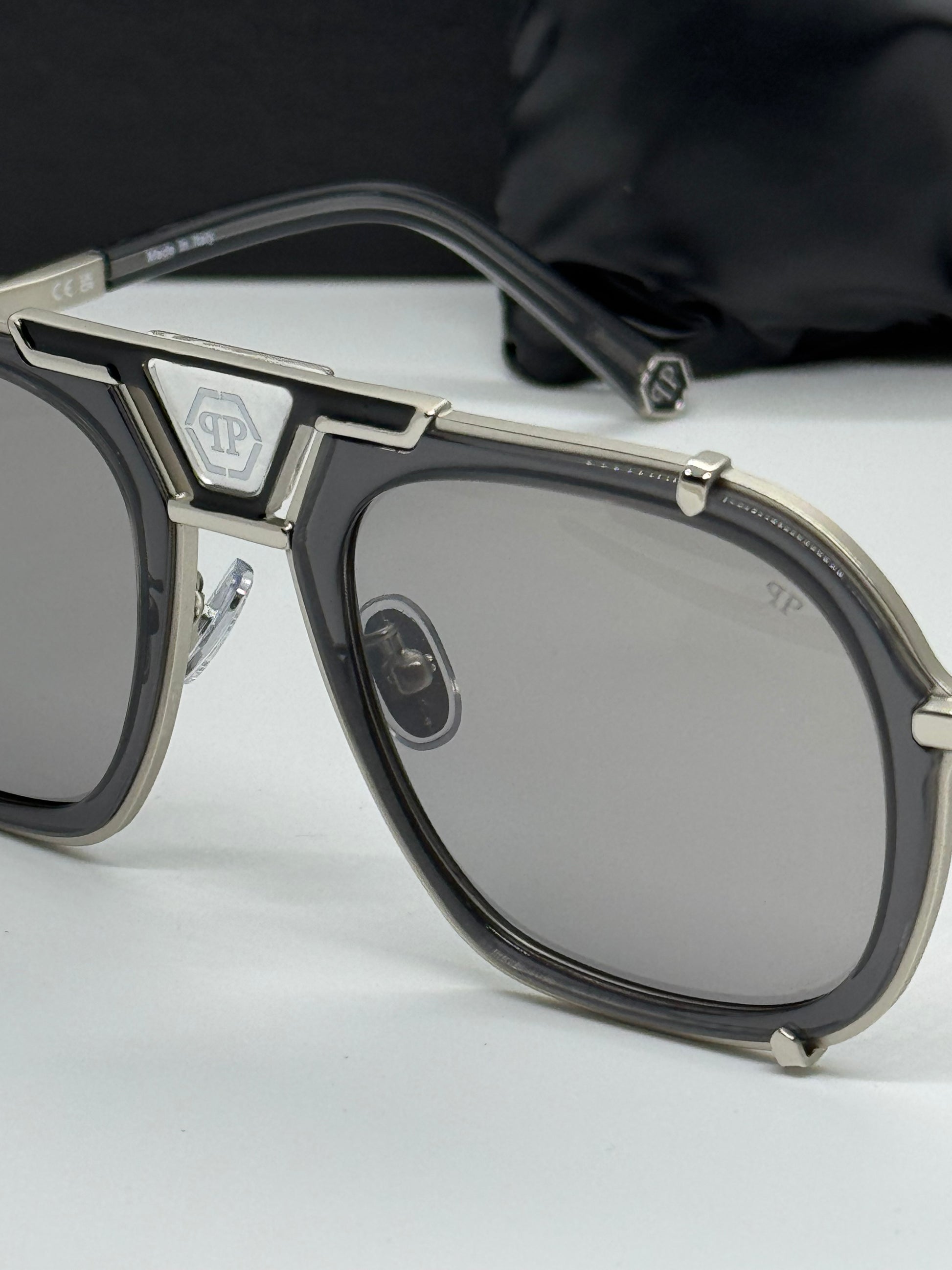 Aviator sunglasses are iconic, and Philipp Plein have created a winner. This metal frame features a carbon effect inset, as well as the Philipp Plein logo on the bridge. Available in Shiny Gunmetal with Sandblasted or Matte, and Smoke lenses, these sunglasses are suitable for any outfit and any occasion.