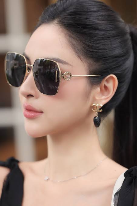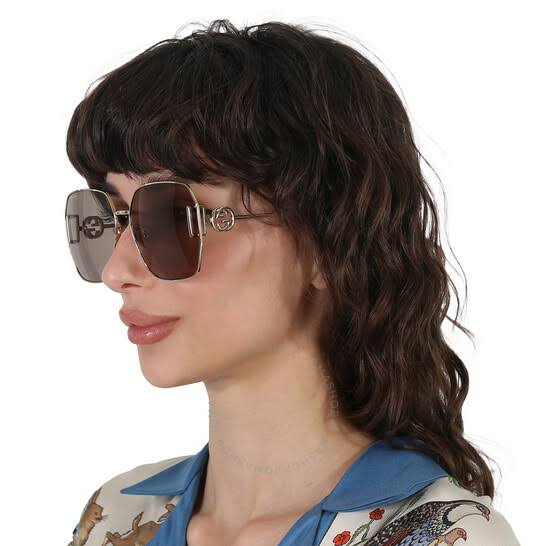 The GG sunglasses are a contemporary style, characterized by their frameless square mask shape. Featuring a functional GG hinge in gold-finish metal, the GG chain temples are inspired by the 30 Montaigne jewelry collection. the glamorous creation will elevate any look with a modern touch.