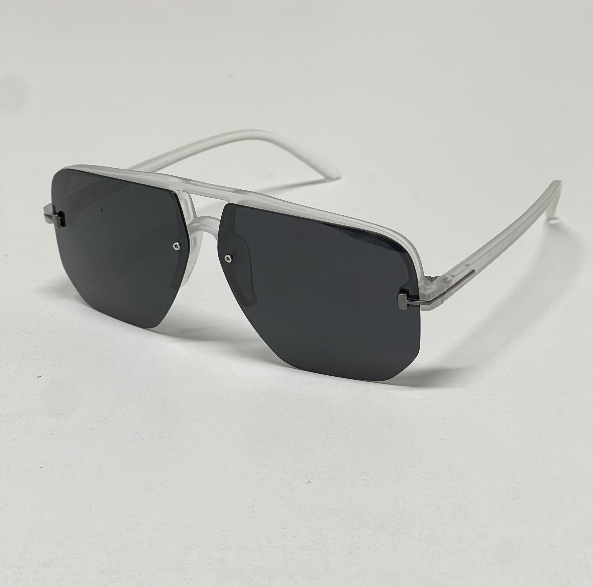 Light weight half frame sunglasses by TF , oversized lens with slim handle T logo on handle , sharp and luxurious look