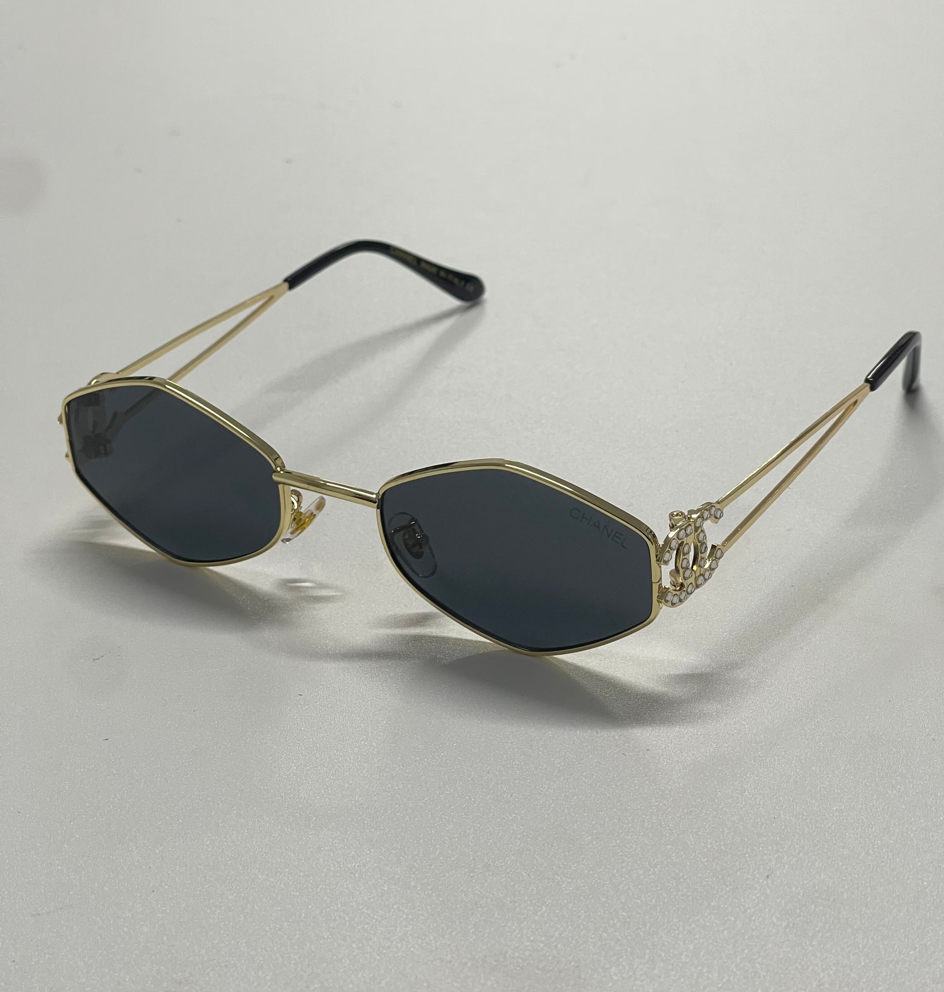 Defined by sharp lines and a hexagonal shape, CC logo with diamond Frame delivers a strong, confident look with a sleek finish and dark lenses that exude mystery.